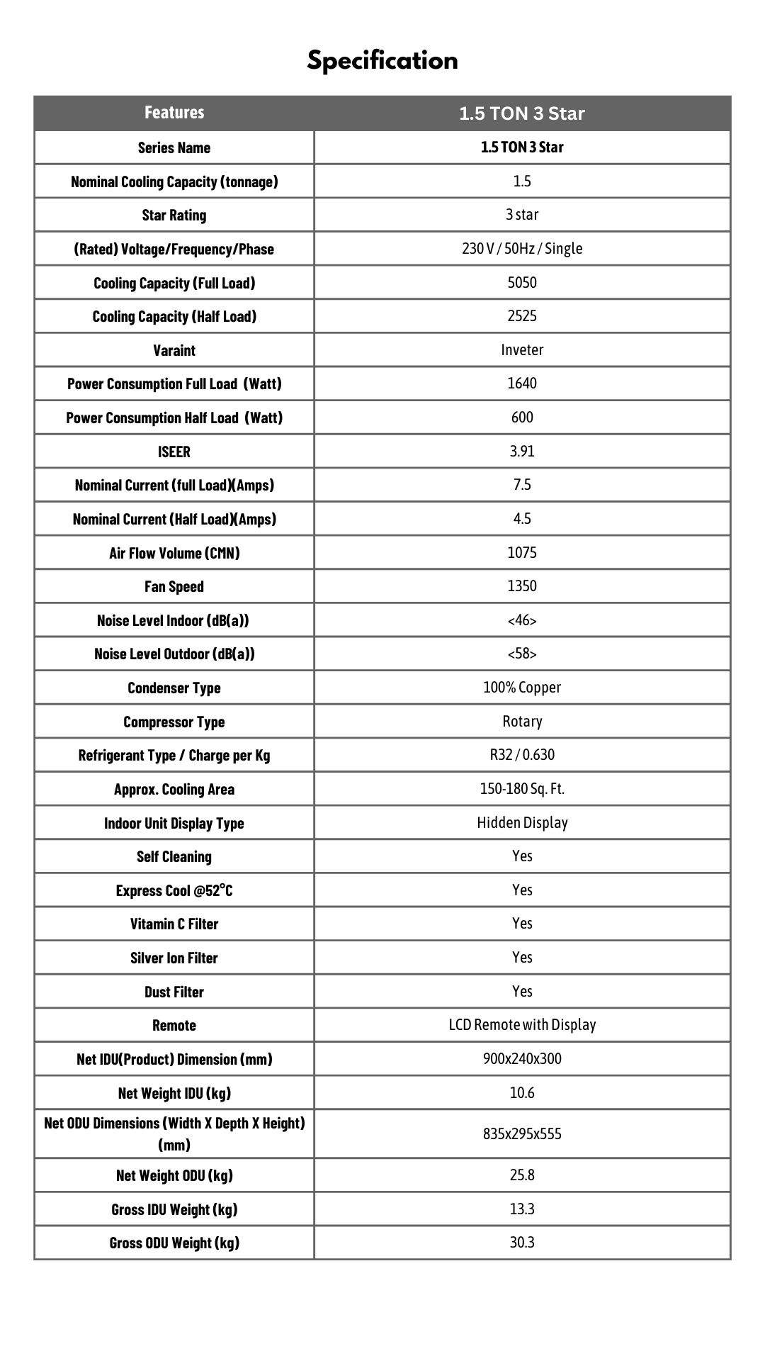 Anti-Corrosive Gold Fins for Protection Turbo Cooling 4-in-1 Convertible Cooling 100% Copper Energy Saver PM2.5 Filter & Vitamin C Filter & ION Filter Self Cleaning