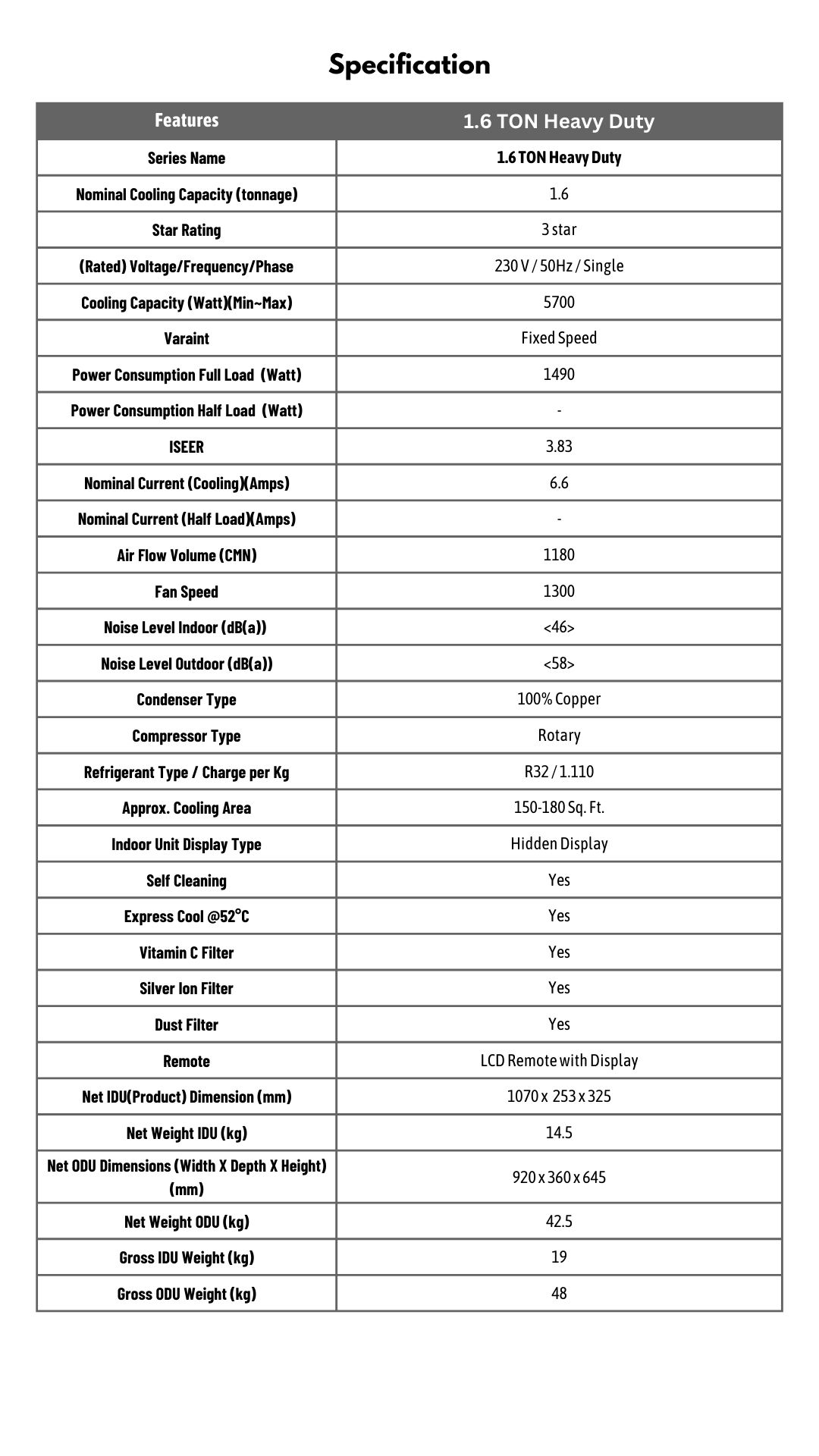 Anti-Corrosive Gold Fins for Protection High Cooling Performance 100% Copper Powerful Air Throw up to 50ft. PM2.5 Filter & Vitamin C Filter & ION Filter Self Cleaning